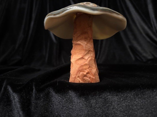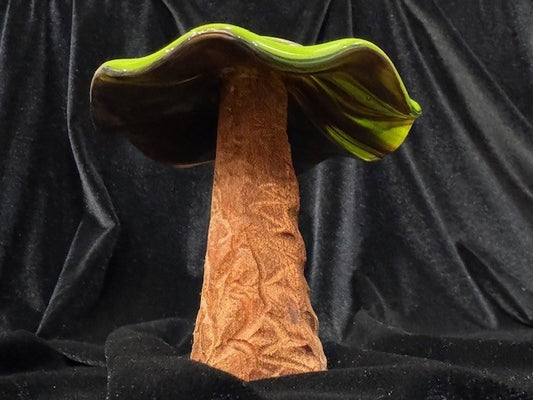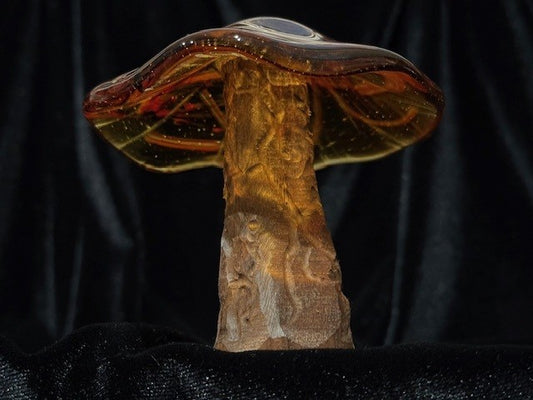 Our handmade glass and wood mushrooms combine the natural elegance of walnut with the artistry of fused glass. Each piece is designed to capture the organic forms of nature, resulting in a beautiful blend of the texture of wood and the translucence of glass that bring a touch of sophistication (and whimsy!) to your home.